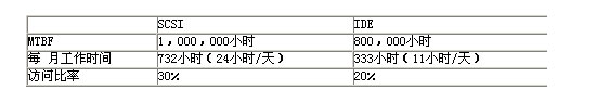 上述的数据清楚的告诉我们SCSI的可靠性要比IDE高的多。对于 RAID磁盘阵列来说,SCSI的可靠性也要高于IDE。