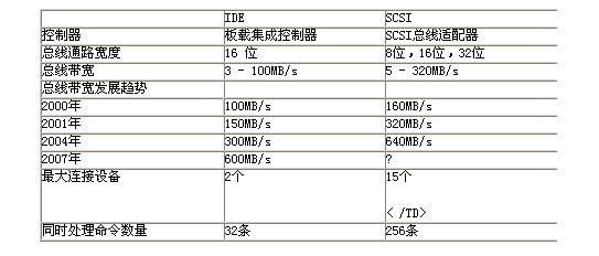 总线带宽:SCSI拥有32位的通路 宽度,峰值传输速率为320MB/s;而IDE只有16位的通路宽度,100MB/s的峰值带宽。