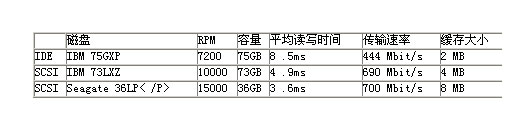 缓存大小:一般IDE磁盘只有2MB 缓存,而SCSI磁盘至少有4MB或者8MB的缓存,这也是SCSI售价高于IDE的主要原因。
